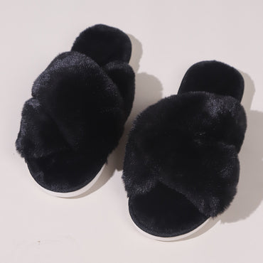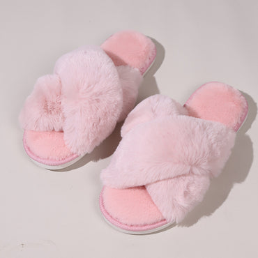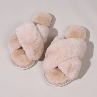 Women Fluffy Slippers Outerwear Cross Household Indoor Plush Lazy Cotton Slippers