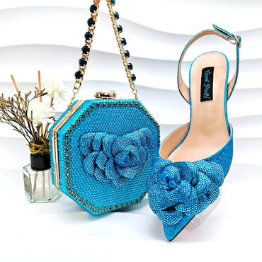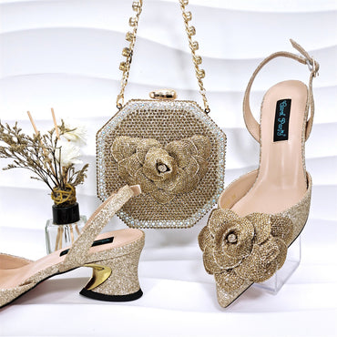 Cocktail Shoes with Bag Set Geometric Abstract Backpacks Clutch Bag with Mid Heel Shoes Party Or Wedding Wear