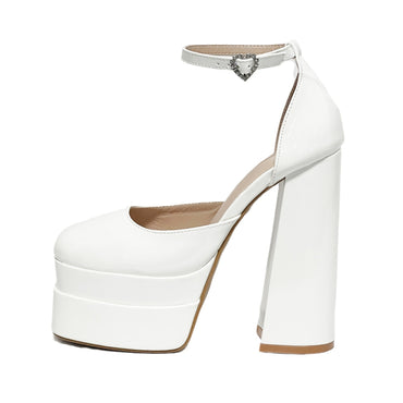 Patent Leather Surface Heart Shaped Rhinestone 14.5cm Double Waterproof Platform Strap High Heel Platform Shoes Women Heels