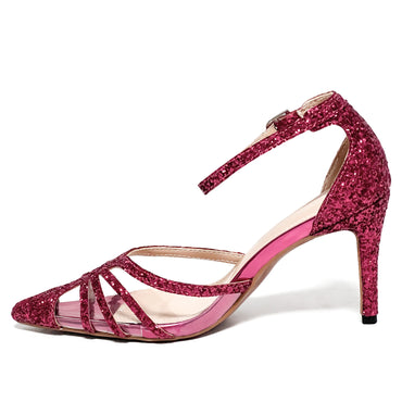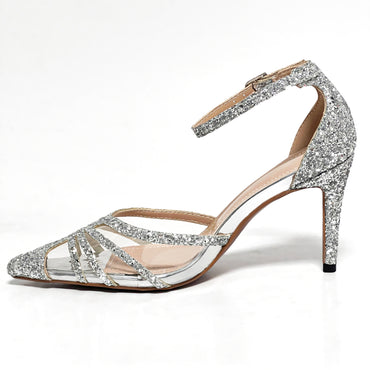 Pointed Toe Stiletto Pumps Sequ Transparent Vamp Candy Color Party Heels Women Shoes