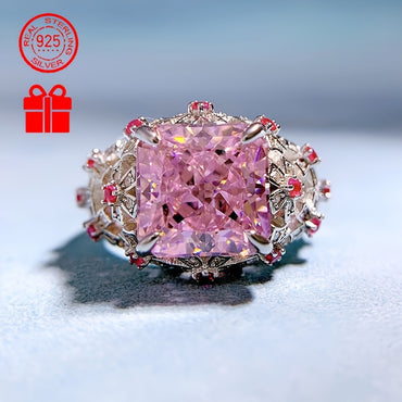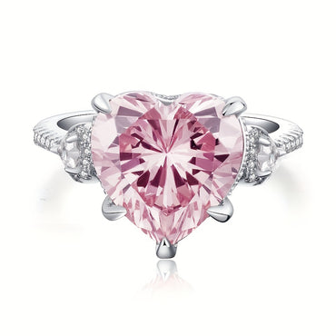 1pc 7 Carat Heart-Shaped Pink Ring with Halo Setting & Moissanite Accents, Elegant Wedding Engagement Promise Band for Women, Anniversary Jewelry Gift, Romantic Gift, Sparkling Halo Design, Highquality Finish
