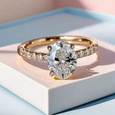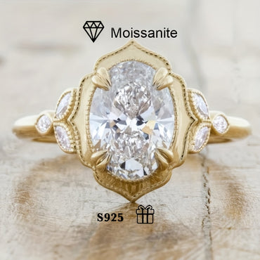 [1pc Luxury Moissanite Ring] 1pc Vintage Style Luxury 2ct Oval Moissanite Ring for Women | Hypoallergenic S925 Silver | 4, 6g | Exquisite Gift Box