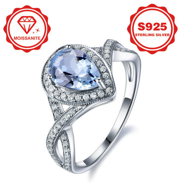 Aquamarine Ring for Women Aquamarine Fashion Pear Sterling Silver Moissanite Promise Wedding Engagement Women's Ring (5-9)