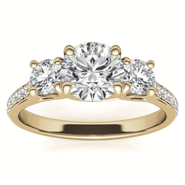Mosaic Material:MoissaniteMain Material:925 SilverPlating: 14K Gold PlatedAmbient: 3-stone-settingProng Setting: 4-prong-settingStyle: Elegant, SimpleGemstone Shape: roundOccasion: Gift-giving Occasion, Wedding OccasionSeasoon: All fitHoliday: Valentine's Day