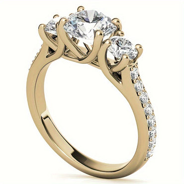 1pc Elegant 3-Stone Moissanite Engagement Ring for Women, 14K Golden Plated 925 Silver, Round Synthetic Stones, 4-Prong Setting, Ideal for Wedding & Valentine'S Day Gift