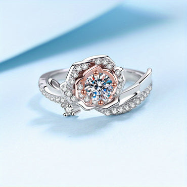One Piece Dropshipping 925 Sterling Silver Ring for Women Rose Flower Rose Golden Two-Tone Platinum Plated 0.5 Carat Moissanite Ring