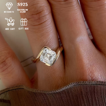 A Rectangular Minimalist Wedding Ring for Women, Weighing 2.6G in S925 Silver with a 2-Carat . Perfect for Proposals, Engagements, Weddings, Thanksgiving, Mother'S Day, And Anniversary Gifts, Presented in an Exquisite Gift Box.