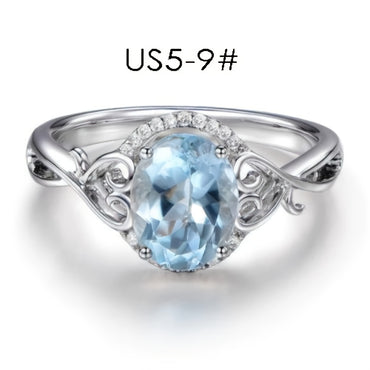 2 Carat (ctw) Aquamarine Ring Sterling Silver Aquamarine Rings For Women Vintage Oval Moissanite Engagement Rings For Women/Fiancee (5-9)