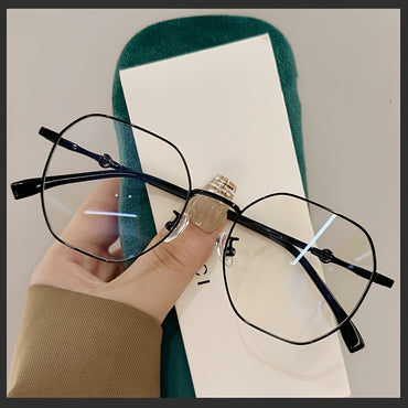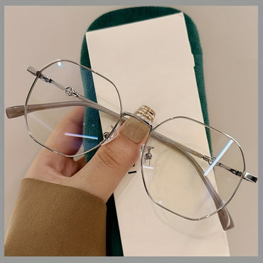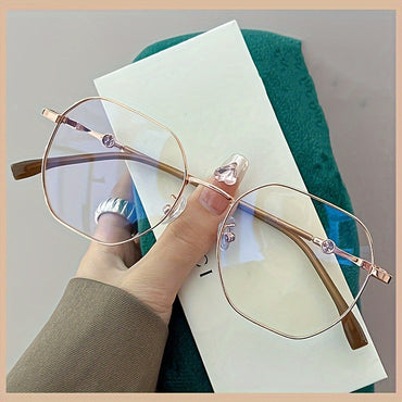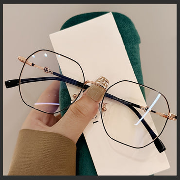 Women's Metal Round-Rectangular Hollow Frame Glasses with Transparent Blue Light Blocking Lenses - Full-Rim Round/Rectangular Eyewear for Daily Use & Party Outfits, Modern Fashion Glasses for Women, Comfortable & Durable Metal Frame, Fashion Hollow Frame