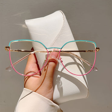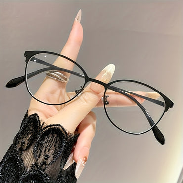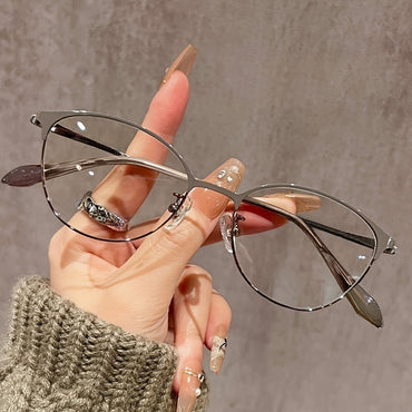 Eye glasses frame type: Full RimFrame Shape: Cat EyeFrame Material: MetalStyle: MinimalistGlasses Included Components: NothingEyeglasses Type: SpectaclesLens Material: PC (polycarbonate)Lens Function: Decorate, Anti Blue Light