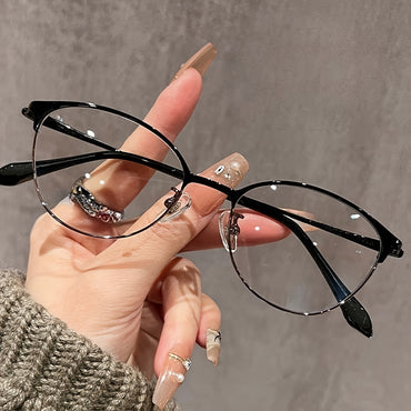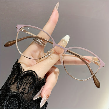 Women's Half Frame Glasses - Anti-Blue Light Computer/Eye Protection Glasses, Ultra-Thin Frame, Lightweight Eyewear for Office, Reading, - Elegant Round Lens Non-Prescription Glasses, Social Gathering Eyewear, Minimalist Eyeglasses, Sturdy Temple Design,