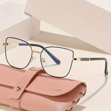Women's Elegant Cat-Eye Glasses - Minimalist Non-Prescription Eyewear with Full-Rim Frame, -Blue Light Compatible for Computer, Parties, Everyday - Sophisticated Ladies Glasses