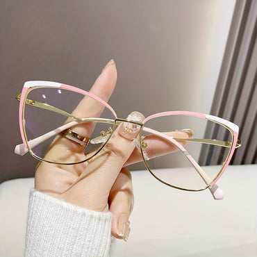Women'S Half Frame Cat Eye Glasses - Anti-Blue Light Computer/Electronics Glasses, Elegant Half-Rim Design, Lightweight & Durable for Everyday, Formal, Party - Chic Women'S Eyewear, Party Accessories, Fashionable Frames, Comfortable Fit, Trendy Frames, Fa