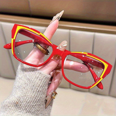Women'S Elegant Cat-Eye Glasses - Anti-Blue Light Computer Glasses with Adjustable +1.00 to +4.00 Diopters, Lightweight Oval Frames, Red & Yellow Accent Lens - for Digital Screens, Reading, Everyday - Stylish Eyewear for Women, Screen Time Protection, Fas