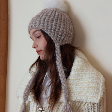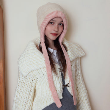 Autumn Winter Korean Sense of Atmosphere Earflaps Woolen Hat Toque Niche Warm All Matching Soft Glutinous Winter Knitting Drawstring Hat