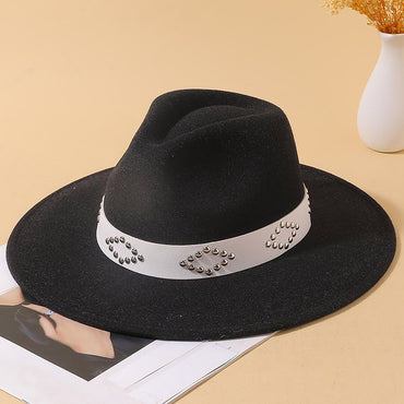 • British Jazz Panama Hat Gray Knot Decoration Wool Hat Big Brim Autumn Winter Elegant Hat