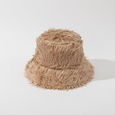 • Plush Solid Color Fisherman Hat Long Hair Keep Warm Bucket Hat Personality Trend Bucket Hat