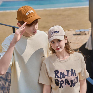 • Vintage Embroidered Letter Graphic Baseball Cap Yellow Beige Couple Peaked Cap Outdoor Casual Sun Hat