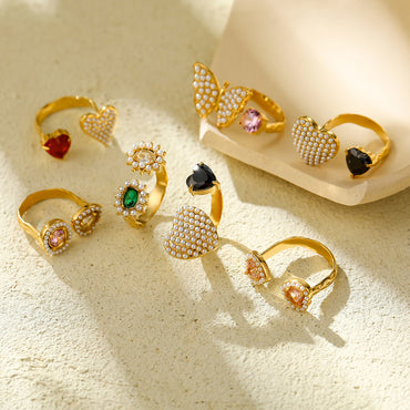 French Vintage Simple Inlaid Natural Stone Exquisite Elegant Stainless Steel Ring Rings All Match Jewelry Women