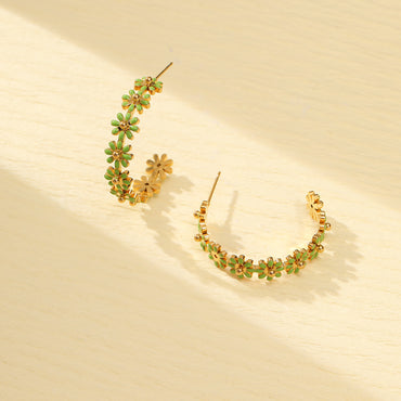 High Grade Drop Oil Titanium Steel Floral Earrings Women Non Fading 18K Gold Stainless Steel Earrings