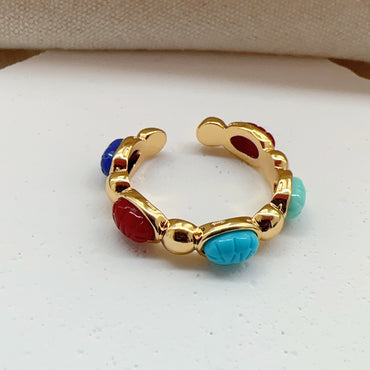 Natural Enamel Color Gemstone Dopamine Turquoise Ring for Women Light Luxury Minority Spring/Summer Premium Vintage Forefinger Ring