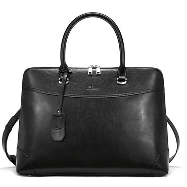 [Vintage Leather Briefcase] 15.6 Inch Vintage Leather Briefcase - Slim Ladies Shoulder Bag for Women Business Laptop