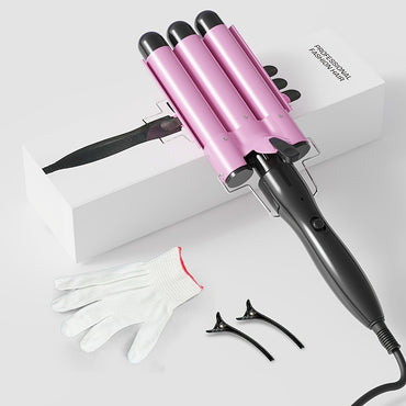 [Volumizing Curler] Sleek 3-Barrel Professional Hair Curling Iron Wand - Ergonomic Grip, Adjustable Temperature Control, Volumizing & Anti-Scald, Ideal for All Hair Types - Black & Orange, US Plug, Hair Curler