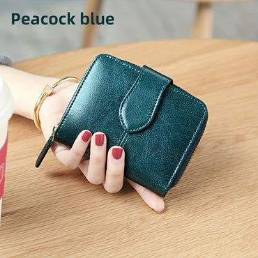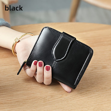 [Vintage Leather Wallet] BANYANU Women's Short Style Genuine Leather Wallet - Vintage Snap Closure, Polyester Lined, Credit Card Compartment, Dry Cloth Clean - Black/Burgundy/Royal Blue