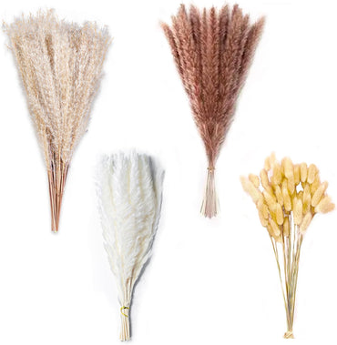 100PCS Natural Dried Pampas Grass Decor - 17.5" Fluffy Pampas Grass Bouquet - Boho Home Decor Dried Flowers for Wedding Floral Room Home Party Table Decorations