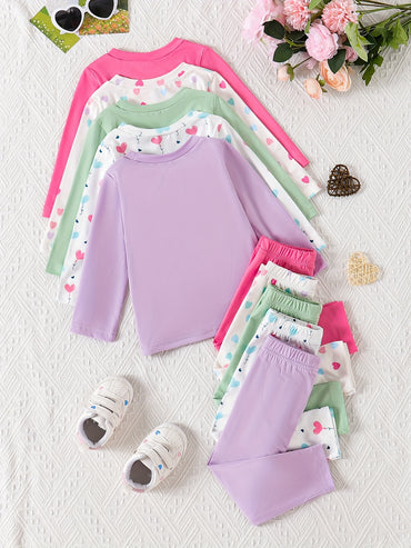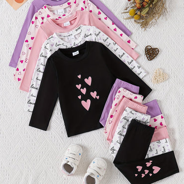 10pcs Girls' Toddler Casual Long Sleeve Long Pants Tops and Bottoms Set, Vibrant Cute Sweet Love Letter Print, Comfortable Stretchy Pullover Outfit for Spring/Fall Daily or Outdoor Playwear, for Outdoor
