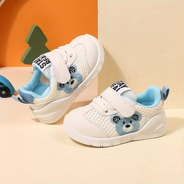 Casual Cute Embroidered Bear Low Top Woven Shoes For Baby Boys, Breathable Lightweight Walking Shoes For All Seasons