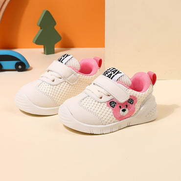 Spring and Autumn 1-3 Years Old Children's Sports Shoes, Soft Sole Toddler Walking Shoes with TPR Anti-Slip Soles for School, Casual Sneakers for Boys and Girls, Suitable for Outdoor/Indoor Activities - White/Pink Blue/Black Red