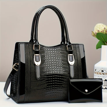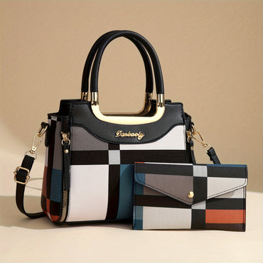 2pcs Elegant Plaid Tote And Crossbody Bag Set, Large Capacity, with Adjustable Strap, Zipper Closure, Polyester Lined, for Women - Chic Gift for Mom And Family, Versatile Shoulder Bag|Chic Tote Bag Set| Bag, Cute Bag Sets