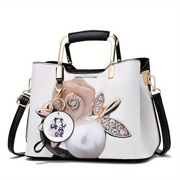 Elegant Women'S Tote Handbag | Large Capacity | with Floral Embroidery | Detachable Shoulder Strap | Versatile Commuter Bag | No-Closure Design | Available in White, Blue, Green, and Black | Perfect for Everyday Use