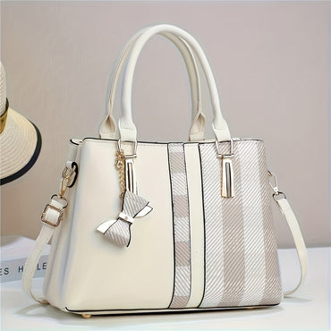 Colorblock Top-Handle Satchel Bag for Women - Faux Leather Purse with Zipper Closure, Large Capacity Shoulder Tote with Messenger Strap and Edge Paint Detail, Fashionable Handbag