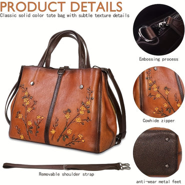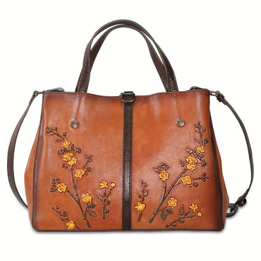 Genuine Leather Satchel For Women Top Handle Bags Handmade Purse Vintage Embossed Leather Crossbody Handbags Hobo Bag