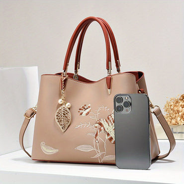 Embroidered Women'S Bags, Foreign Trade Handbags, Middle-Aged Mother'S Bags, Simple And Atmospheric Handbags, Fashionable Stitching Tote Bags