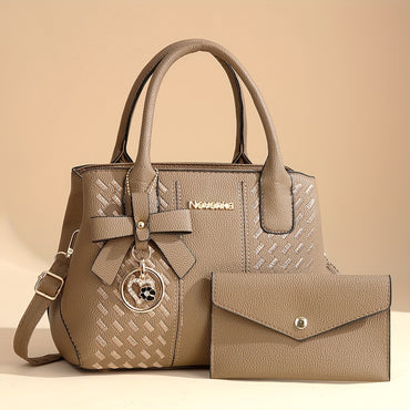 2pcs Women's Bags (one Handbag+one Wallet) Set, Neutral Large Capacity Handbag, Zipper Closure, Polyester Lining, Painted Edges, Detachable Strap, Solid Color, No Pattern, with Handbag, Perfect Gift for Mother's Day And Friends