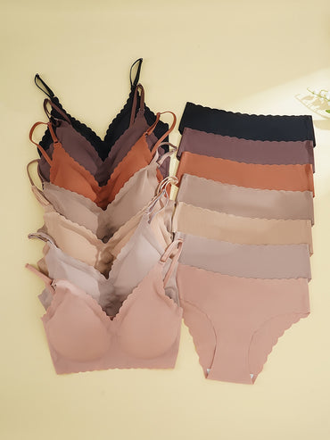 [Seamless Comfortable Bra] 3pcs Seamless Steel Ringless Comfortable Bra - Breathable Simple Basic Women's Daily Underwear Set