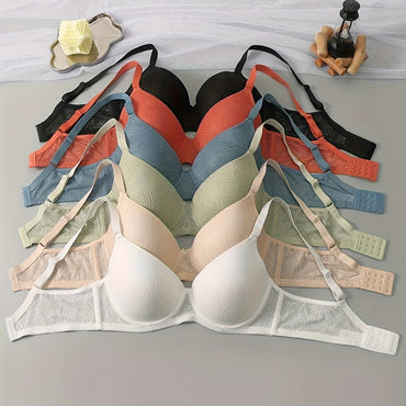 6pcs Solid Underwire Sexy Comfy Push Up Bra, Women's Lingerie & Underwear