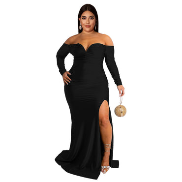 Plus Size Women Clothes Sexy Dress Nightclub V neck Formal Dress Solid Color Split Maxi Dress Autumn Winter High Split
