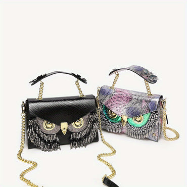 2024 Chic Owl Tassel Crossbody Bag - Spacious & Versatile with Adjustable Strap, Glitter Accents, Pink/Black