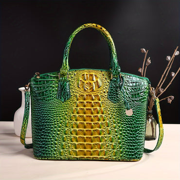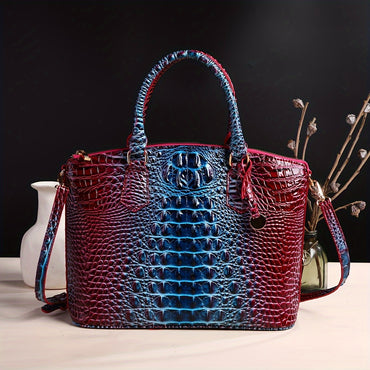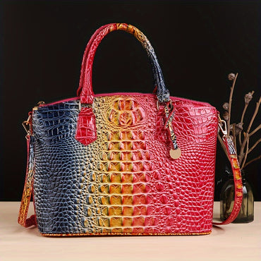 Everyday Elegance| Elegant Women's Crocodile-Embossed Handbag - Luxurious Boston Bag with Vibrant Gradient Colors, Large Capacity, Faux Leather, Zip Closure, Detachable Shoulder Strap for Daily Use & Parties