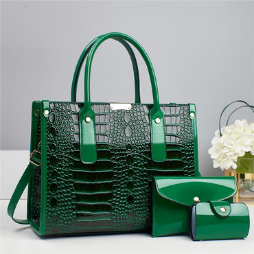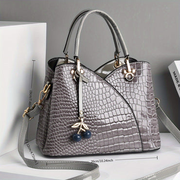 [New Fashion Handbag] 2024 New Fashion Large Capacity Crocodile Pattern Handbag for Women - Adjustable Strap, Zipper Closure, Polyester Lining, Wristlet, and Edge Paint, Mother-Son Matching Design