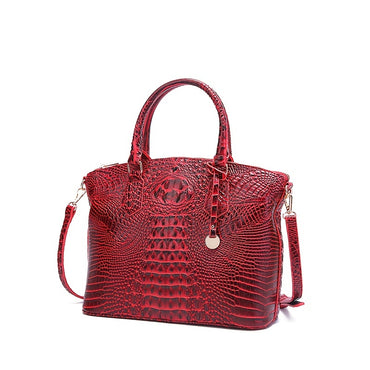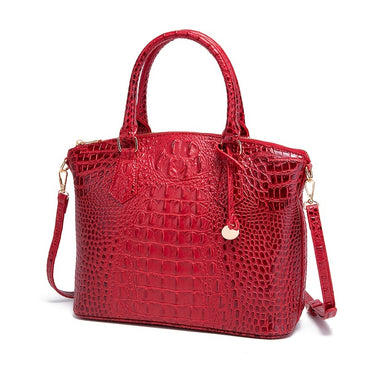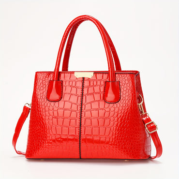 Elegant Crocodile Pattern Handbag for Women, Large Capacity Shoulder Bag with Zipper Closure, Polyester Lined, Edge Painted, Versatile for Various Occasions - Red