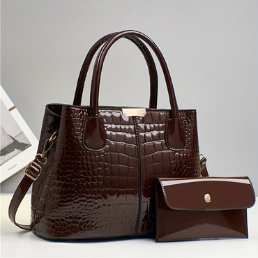 2pcs Chic Crocodile Pattern Faux Leather Set - Spacious Interior, Trendy Shoulder Strap, Fashionable Clutch Purse, Stylish Accessory for Work, Daily Life, and Special Occasions with Premium Quality, Durable and Stylish Design
