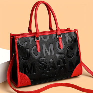 Women'S Stylish Vintage Embossed Letter Pattern Tote Bag, Elegant Color-Blocked Crossbody Bag, Everyday Commuting Shoulder Bag, Work Handbag.