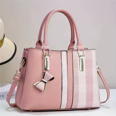 TEPILTE Women'S Small Crossbody Bag - Retro Print Shoulder Bag with Adjustable Strap, Zipper Closure & Polyester Lining, Bright Pink with White Stripes & Bow Accents for Shopping, Travel, Daily Casual Use, Crossbody Purse, Synthetic Faux Leather