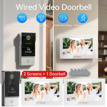 Smart Video Door Phone System - 7" HD 1080P Camera, Wired Doorbell with, Tuya App Control, Two-Way Audio, Night Vision, Motion Detection Alerts, RFID Doorbell Camera with 5 RFID Cards, Compatible with, for Home/Office/Storefront Security, Office Access Co