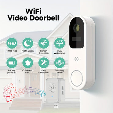 Wireless Doorbell Camera with Chime, Video Doorbell Wireless Doorbell with two Dingdong, HD Doorbell Camera, High Definition, Remote Real-time Monitoring, PIR MotionDetection, Two-Way Intercom, Night Vision, Cloud storage, Intelligent Remote Call, Smart H